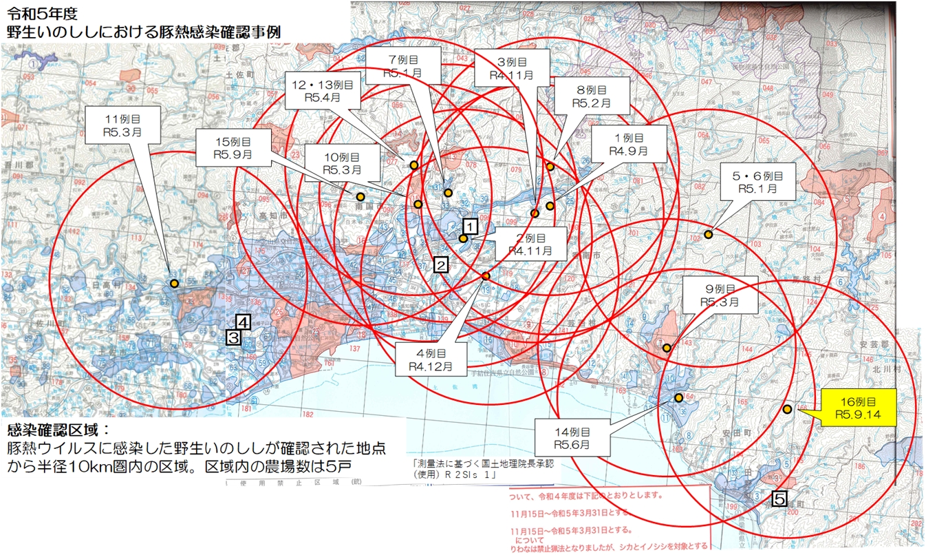 県内における「捕獲野生いのしし」の「豚熱」事例の確認について(9/14?県内16例目)