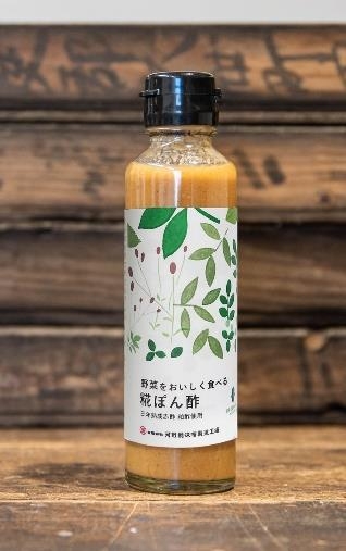 「野菜をおいしく食べる 糀ぽん酢」 (145ml、税込み 648 円) 野菜そのものの味をいかに引き立てながら驚きを与えられるかにこだわりました。野菜に寄り添う自然な甘みは、河野酢味噌製造工場の創業以来 130 年以上大切に育んできた、溶けのいい “糀”から生まれるもの。とろりとしているのが特徴で、ゆずの風味と生しいたけのふくよかな香りを効かせながら、野菜と絶妙に絡み合います。また、一般的なぽん酢に入っているかつお節などの動物性食品や、砂糖は一切使っていません。糀としいたけで旨みを出した、野菜を運ぶはしが止まらなくなる新感覚のぽん酢です。NPO 法人ベジプロジェクトジャパン ヴィーガン認証を取得。