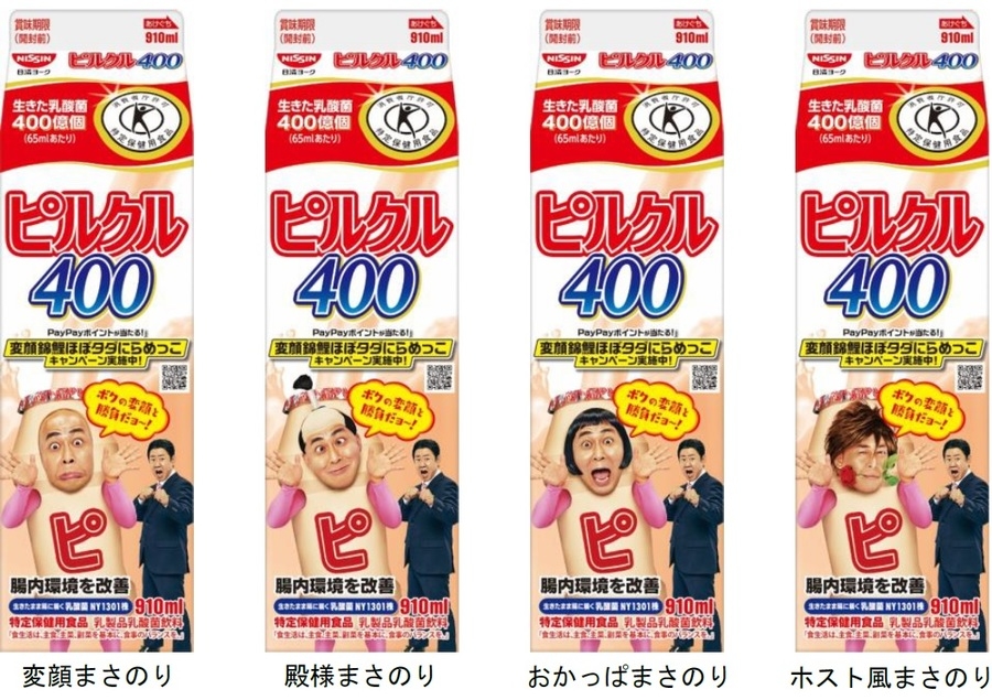 "変顔まさのり" や約30年ぶりの "ホスト風まさのり" も!?「ピルクル400 変顔錦鯉パッケージ」も期間限定で登場! 特定保健用食品の「ピルクル」は、1993年9月の発売以来、"思い切りゴクゴク飲める乳酸菌飲料" として多くのお客さまにご愛飲いただいています。