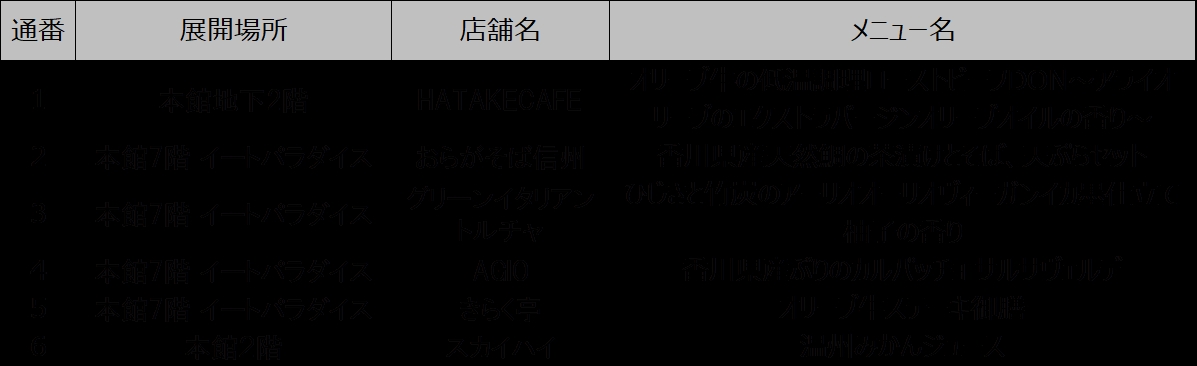 (3)販売商品(予定) オリーブ牛、オリーブぶり、レタス、ロメインレタス、金時人参、ブロッコリー、さぬきゴールド、さぬきキウイっこ(R)、さぬきエンジェルスイート、香緑、小原紅早生、讃岐うどん、オリーブオイル、新漬けオリーブ 他