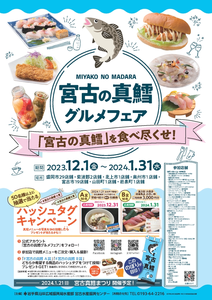 - 公式アカウント「宮古の真鱈グルメフェア」(Facebook/Instagram/X(旧Twitter))をフォロー。