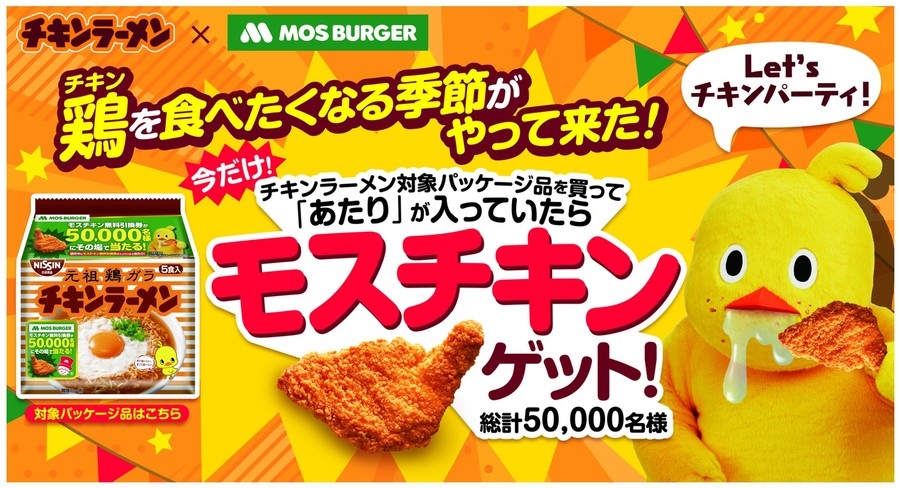 「チキンラーメン モスチキンプレゼントキャンペーン」を11月下旬から実施