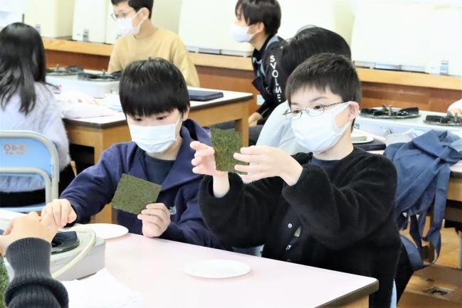 小学生が麩ラスク作り、海苔の食べ比べなどを体験