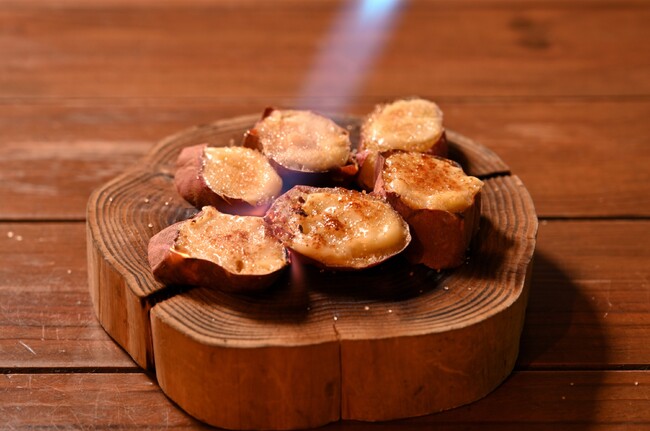 ねっとり甘い芋にカスタードをのせ、バーナーで一気に炙ります。