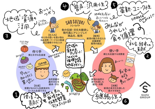 私たちは地域の食の魅力を紐解き、今に合った形にアップデートして循環させることで継承していく仕組みを『地域デザイン』として考え、様々な事業を通して、新潟の魅力と併せ、この仕組みを全国へ発信する活動をしています。