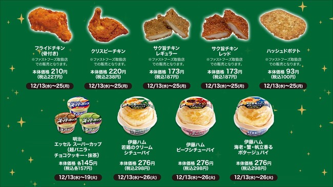 もうすぐクリスマス!デザートやチキンなど、クリスマスを彩る商品を発売しております。