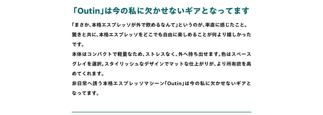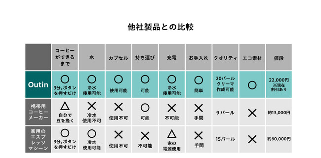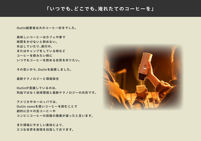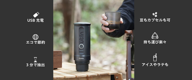 ポータブルコーヒーマシン「Outin Nano」は日本正式販売開始を記念して、先行販売を実施します。
