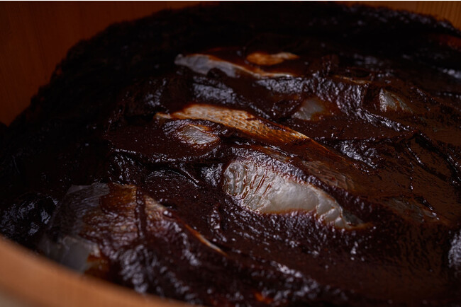 「あたぼう鮨」は、その魅力を最大限に活かすため、1885年(明治18年)から江戸甘味噌を製造・販売する「株式会社 あぶまた味噌」(東京・中野)の協力を得て、江戸甘味噌を100%使用した味噌漬けを開発しました。