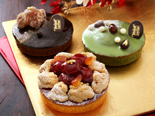 抹茶やマロン、フルーツなどをあしらって、お正月らしく華やかに仕上げた 3 種のガトー・ナンテ。帰省の手土産や新年のお祝いにもおすすめです。