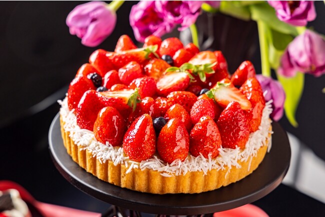アーモンドクリーム入りのタルト台に、たっぷりのいちごをあしらった贅沢な一品。いちごの甘酸っぱさを楽しめます。