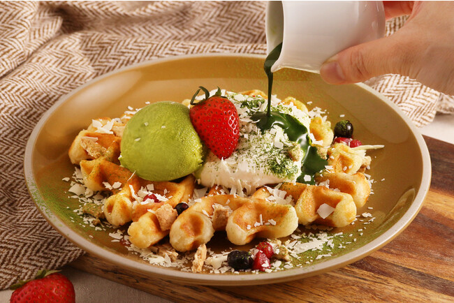 ■ホワイトチョコと苺の抹茶ティラミスワッフル 1408円(税込)