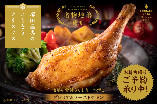 メス鶏の骨付きモモ肉をこだわりの調味液に漬けこみ、低温調理を施したのちにじっくりと焼き上げる、手間暇かけた塚田農場のローストチキン。