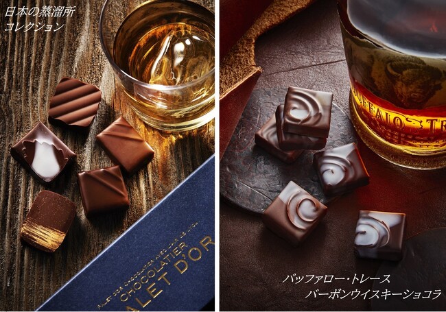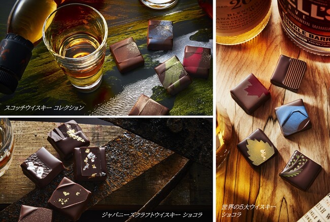 ウイスキーとショコラのマリアージュ。希少なジャパニーズクラフトウイスキーや、スコッチウイスキーに特化したアイテムなど、これだけの種類のウイスキーが楽しめるのはショコラティエ パレドオールならでは。