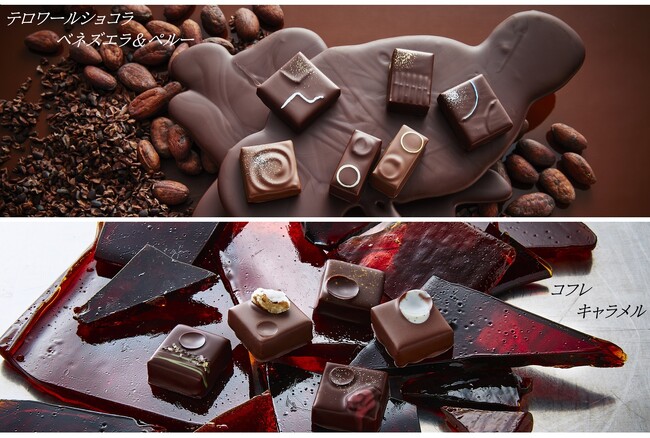 南米のカカオ産地ベネズエラとペルーに注目し、同じ産地の素材と組み合わせたショコラと、様々な素材とキャラメルのコンビネーションを楽しむショコラ。