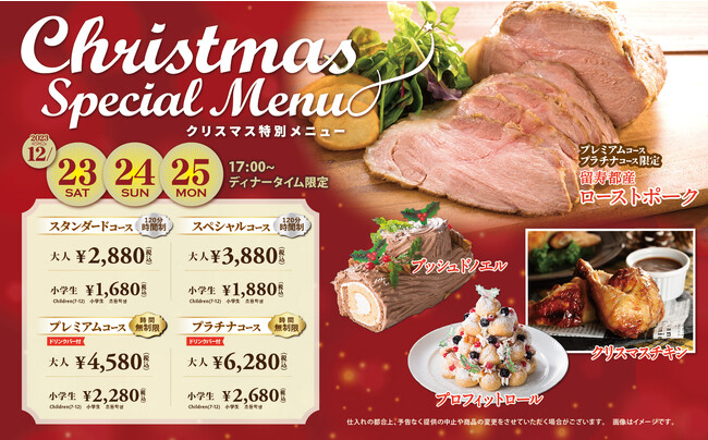 そして、2023年12月23日(土)からの3日間は、クリスマスの定番メニューの『クリスマスチキン』や、風味豊かな味わいの『留寿都産ローストポーク』が食べ放題!