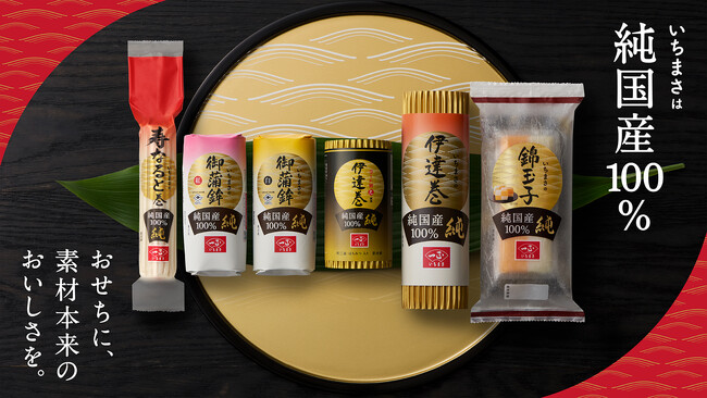 「純国産100% 『純』シリーズ」は、素材も産地も100%にこだわったおせちシリーズです。主原料から副原料まで国産の原料を100%使用し、素材本来の味を引き出した飽きのこないピュアなおいしさが特長です。「いちまさ」だからできるこだわりの品質で、日本の伝統をお届けします。
