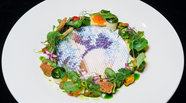 可食レンチキュラレンズを利用した「レンチキュラーサラダ」。