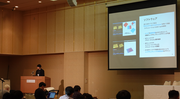 この研究発表では、可食レンチキュラレンズの設計から作製までの一連のワークフローを支援するシステムを提案しました。このシステムを用いて、ユーザはソフトウェアによるシミュレーションを通じてレンチキュラレンズの視覚効果をデザインし、ハードウェアを用いて切断成形手法によるレンズ作製を行うことができます。