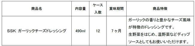 エスエスケイフーズ株式会社(本社:静岡市葵区)は、業務用商品に新味として「SSK ガーリックチーズドレッシング」を発売いたします。近年、食品等の値上げに伴うストレス解消として、若年層で背徳グルメがトレンドとなっております。ガーリックとチーズという背徳感のある素材を使用して、濃厚で食べ応えのある味わいに仕上げました。