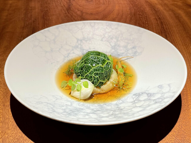 サボイキャベツで包んだ牛ほほのブレゼ ダブルコンソメスープ