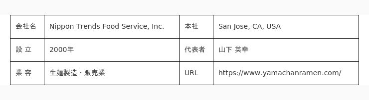 【Nippon Trends Food Service, Inc.社概要】