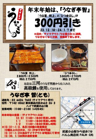 今回、「うなぎ亭 智」のうな重をより多くの方に知って頂きたく、年末年始キャンペーンを実施致します。