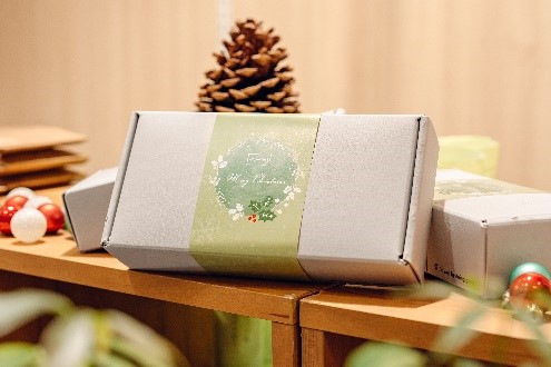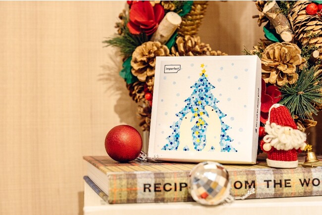 さらに、ギフトシーズンに合わせて、imperfectの人気商品を詰め合わせたギフトボックスなど一部の商品には、期間限定でクリスマスラッピングもご用意致します。この時期ならではの贈り物を喜んでいただけるように、クリスマスリースをあしらったデザインとなっています。贈り物の気持ちはしっかりとお伝えしながら、必要以上の資源を用いず、受け取る方にも地球にもやさしいラッピングを実現しました。