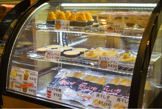 焼き芋をはじめ、スイートポテトやアイス、お芋を使ったブリュレ、ティラミス、シェイク、など、種類豊富なメニューですが、商品名がとても可愛らしいのが印象的です。