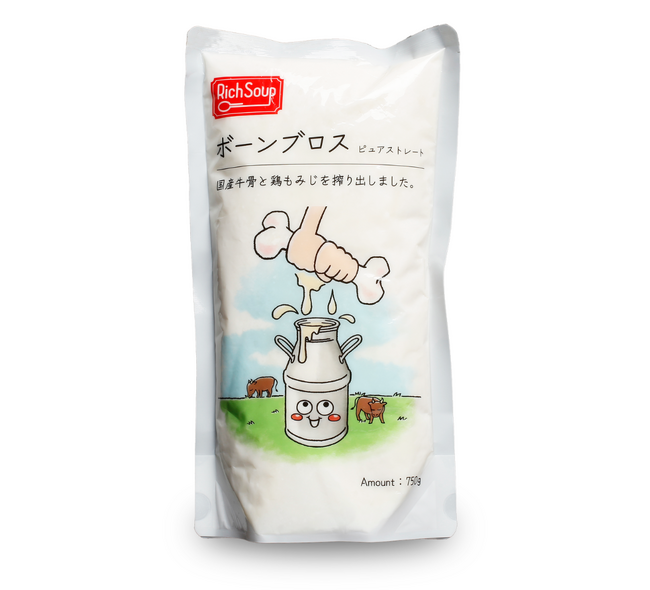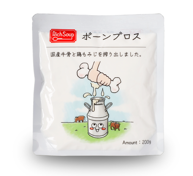"Rich"には「贅沢な・濃厚な・豊富な」の3つの意味が込められており、なかなか家庭では再現できない濃厚さで、"旨味"も"栄養"も豊富に溶け込んだボーンブロスのブランドであることを表しています。またレトルト殺菌加工を施しており、常温での長期保存を可能にしております。コーヒー感覚でそのまま飲んだり、料理に活用したり、たくさんの方々にボーンブロスを日常的に飲んでいただくため誕生した新しいスープブランドです。