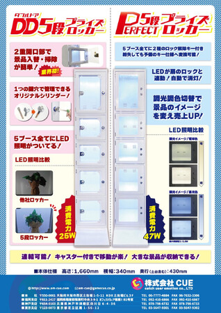 株式会社CUEが開発・販売する「DD5段プライズロッカー」と「PERFECT5段プライズロッカー」