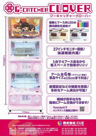 株式会社CUEが開発・販売するクレーンゲーム機「G-catcherクローバー」