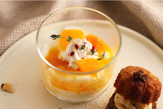 すっきりとした甘さの温州みかんソースとオレンジで仕上げました。