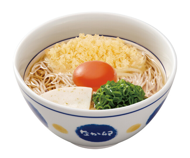 また同日より、なか卯自慢のこだわり卵が付いた「月見そば」、ジューシーで食べ応えのある“おあげ”がのった「きつねそば」も販売します。