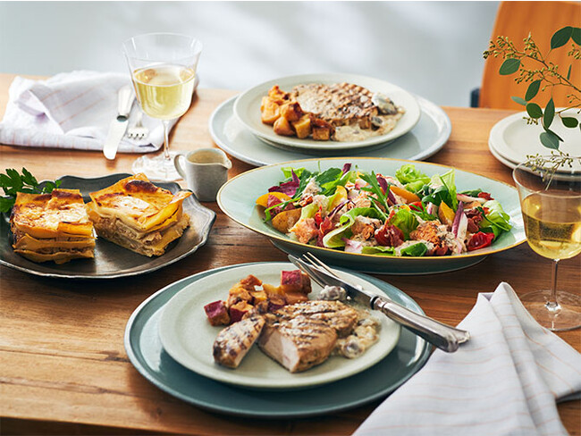 さまざまな食卓シーンに寄り添い、こだわりの料理とお皿をセットにしました。回を重ねるたびに、届いたお皿を組み合わせることができる料理を提案します。盛りつけ方をイラストで分かりやすく解説した「レッスンブック」付きです。ソースや食材が引き立つシンプルな器をセレクト。「どんな器を選べばいいの。どう盛り付つけるの」といった心配をすることなく、テーブルコーディネートが楽しめます。まずはご自身に楽しんでもらいたい、そう考えて企画・開発しました。