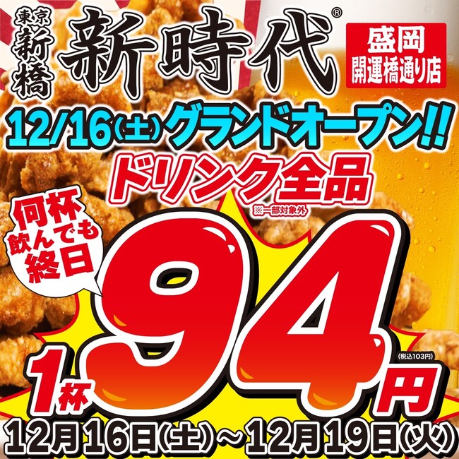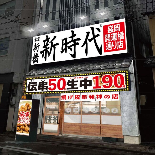 フラッグシップブランド「新時代」等を全国150店舗展開する株式会社ファッズ(本社:愛知県名古屋市、代表取締役:佐野直史)は、2023年12月16日(土)に「新時代 盛岡開運橋通り店」をオープンさせて頂きます。名物商品の『伝串』は、注文率は500%、累計販売本数1億本超えの大ヒット商品です。生ビール(サッポロ黒ラベル)は、1杯190円、ハイボール150円。