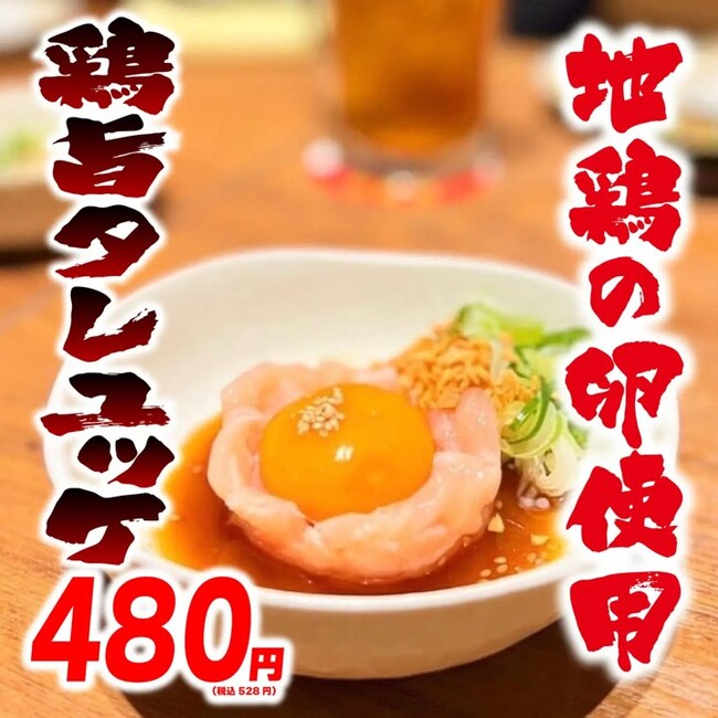 ・鶏とろ肉と地鶏たまごの『鶏旨タレユッケ』480円