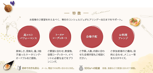 「美味しい・お洒落・ボリューム」の3拍子が揃ったケータリングメニューを厳選した、