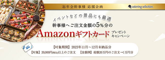 ■概要:20,000円(税込)以上のご注文で、ご注文金額の5%のAmazonギフトカードを幹事様へプレゼント!