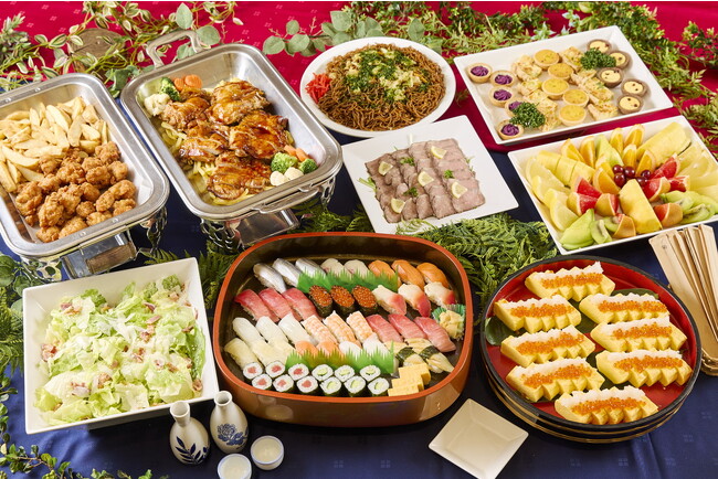 ローストビーフ、お寿司、フルーツ盛り合わせ入り!華やかな和洋折衷人気メニューが目白押し!