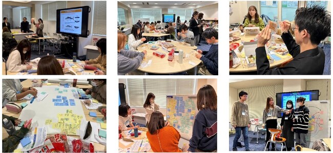 かつお節・企業の価値を俯瞰的に捉え直し、社会的価値と経済的価値を実現する共創価値のデザインを目指すシステムデザインのグループワークを行いました。
