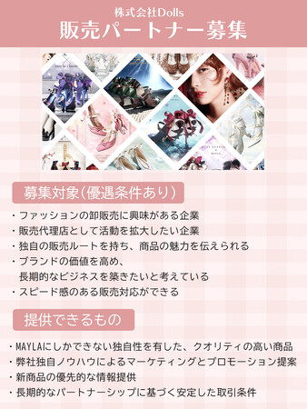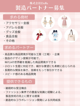 弊社が展開しておりますファッションブランド「MAYLA」とコラボレーションを希望される企業を募集しております。