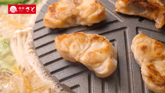 さと特製のポン酢で下味をつけた焼きふぐを鍋の上で焼くと、芳ばしい香りと共に焼きふぐならではのしっかりとした弾力の食感で、てっちりとはまたひと味違う真ふぐの美味しさをお楽しめ頂けます。是非この冬は和食さとの「真ふぐ」食べ放題をお楽しみください♪