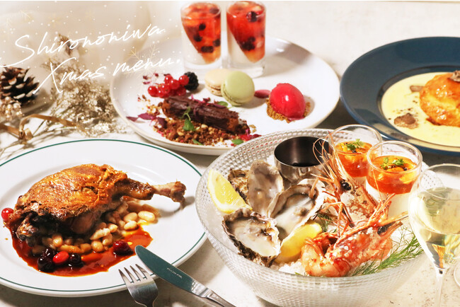 乾杯と一緒に頼みたい豪華な前菜、魚介とお肉のメイン料理、ドルチェプレートと、クリスマスを華やかに彩るシロノニワならではのメニューを期間限定でお届けします。
