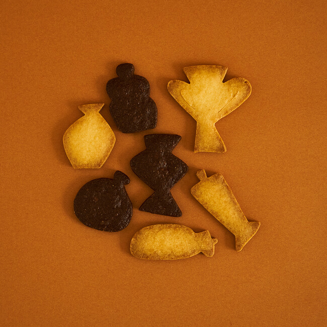 < uRn.chAi&TeA >のアイコン、壺をかたどった可愛らしいサブレはバターとカカオの2種類。塩味と甘味が絶妙なコントラストのバターサブレとカカオニブが入ったリッチで大人な味わいのカカオサブレです。