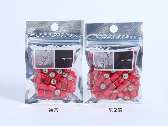 パパブブレでは、毎日5回行うキャンディパフォーマンスで作られた出来立てキャンディをその場ですぐに販売しています。通常は出来立てキャンディを40g入りで販売しているところ、今回横浜高島屋店のみの期間限定で、価格はそのままに、袋に約2倍の量をお詰めしてご提供いたします。職人がその場で作ったキャンディはまだほんのり温かく、お買い物やお出かけの記念にもぴったりです。