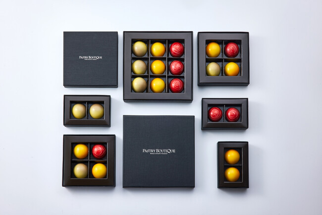 キュートなカラーが印象的なチョコレートボンボン3種は、それぞれ素材のコンビネーションが光り、上品で個性溢れるテイストに。柚子をあわせた「キンモクセイ」、赤味噌のガナッシュとプラリネの「ヒマワリ」、バラの香りと塩キャラメルの風味が際立つ「ローズ」をラインアップしました。カジュアルギフトや手土産など、用途に応じてお選びいただける個数のバリエーションを揃えています。