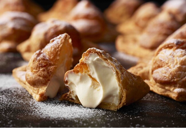 店内のオーブンで焼き上げたサクサクのパイに、北海道産ミルクをたっぷり使った特製のミルククリームをたっぷりと詰め込みました。
