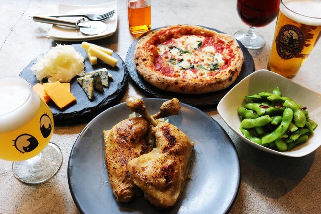 20種のビール飲み放題に、骨付きチキンや、チーズ盛り合わせ、石窯ピザなどがついた、忘新年会にぴったりのプランです。