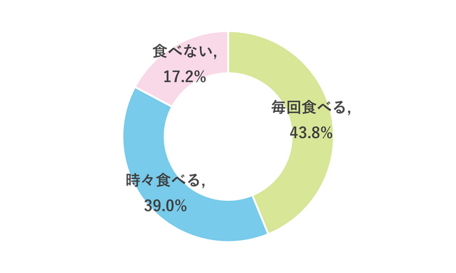 全国の中学生男女500名を対象に、「塾前食」(塾の前に食べる軽食)をとるか質問したところ、82.8%が「食べる」(毎回食べる:43.8%、時々食べる:39.0%)と回答しました。8割以上の中学生が何かしらの塾前食を食べてから、通塾していることがわかりました。