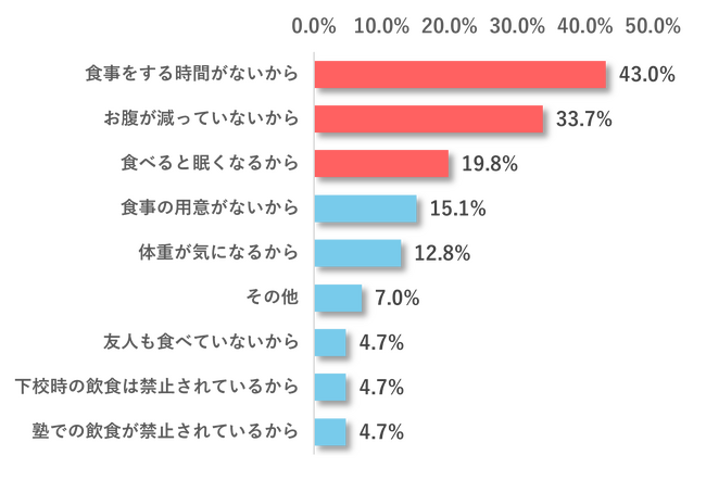 塾前食を食べない理由、最多回答は「食事をする時間がないから(43.0%)」